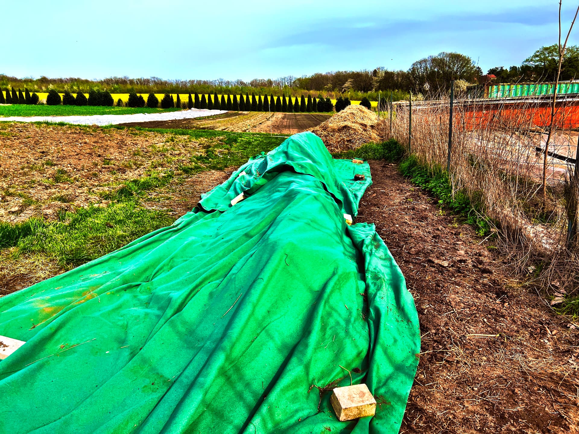 Nach dem Rundgang durchs Gewächshaus und über die Freiflächen, wurde das Gewächshaus von Moos befreit, das Netz und die Folienreste wurden von den alten Tunnelgestellen entfernt (zur Vermeidung von Mikroplastik der immer wieder in die zukünftigen Beete fallen könnte).