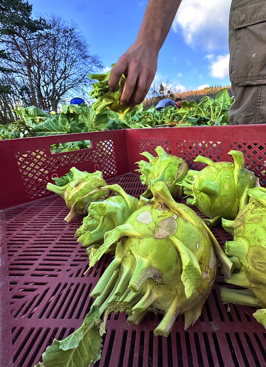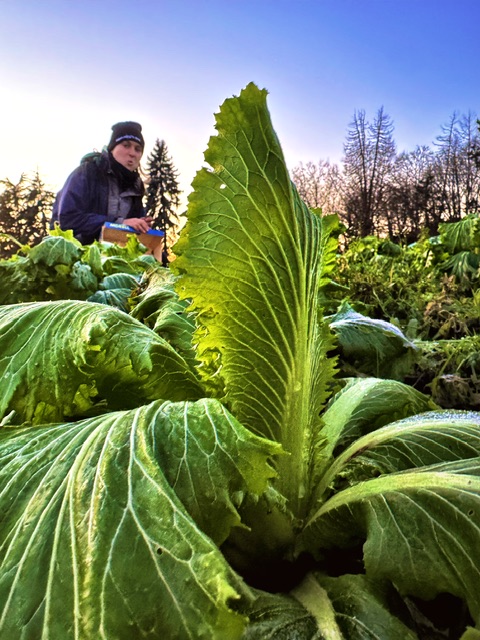 Rotkohl und Weißkohl wurden bereits am Freitag vom gesamten Gartenbauteam bis spät in die Dunkelheit gerettet. Am Samstag dann: Sortieren, putzen, in den Lagerkeller bringen.